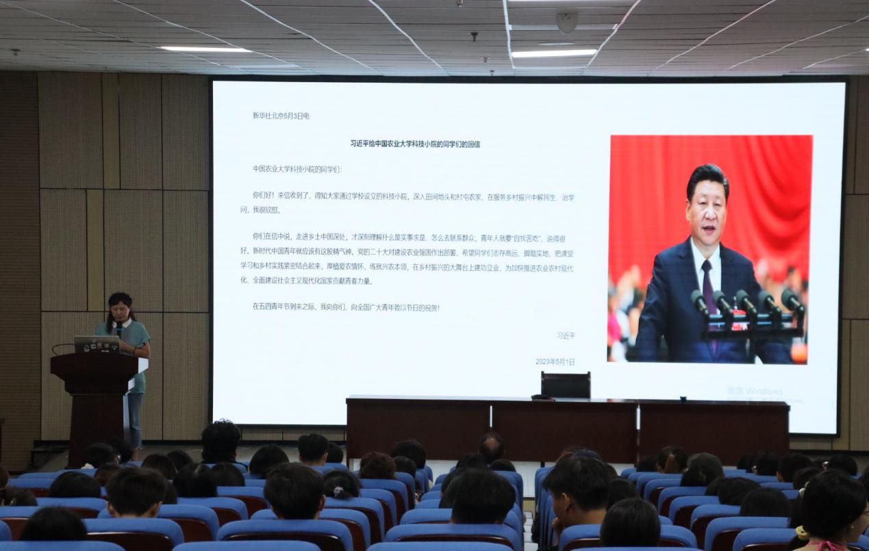 会上,罗聃宁首先带领师生共同学习习近平总书记给中国农业大学科技小院的学生回信。强调同学们要牢记总书记嘱托,强化责任担当,厚植爱农情怀,练就兴农本领,将自己无限的才华和热情投入到丰富多彩的乡村振兴及社会实践中去。同时鼓励同学们踊跃参加“挑战杯”、创新创业等学科赛事,依托专业知识突破自我,为未来人生发展拓宽选择空间,积蓄成长动能。