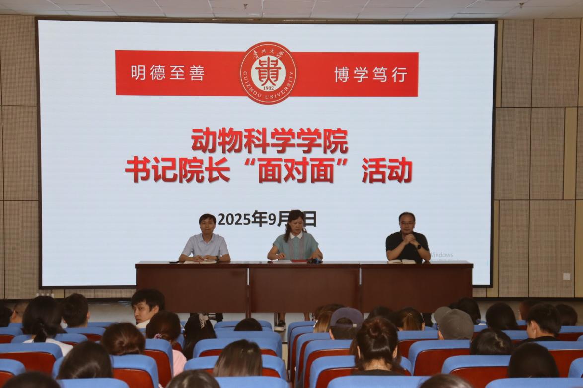 9 月 1 日中午,动物科学学院在崇德楼124 报告厅举办 2024 级本科生学风建设专题会暨书记院长面对面。学院党委书记罗聃宁、副院长欧德渊及程振涛出席会议,学生科辅导员、2024 级本科生班主任带领全体学生参会,学生科科长聂江昱菡主持会议。