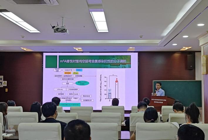 随后,李显耀在题为“鸡空肠弯曲菌感染的调控”的学术报告中,系统解析了该菌感染的节律性调控机制、转录后调控,并重点揭示了m6A修饰及其识别蛋白YTHDC2通过调控巨噬细胞炎症因子释放和抗菌效应,为宿主-病原互作的表观转录组调控机制提供了新见解。